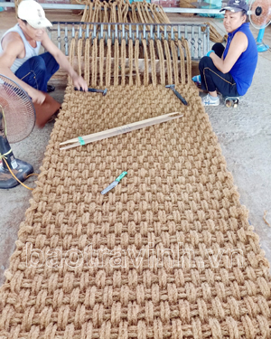 Lao động đang dệt thảm xơ dừa-sản phẩm đạt OCOP 3 sao năm 2019 tại Công ty TNHH MTV Út Mừng. |