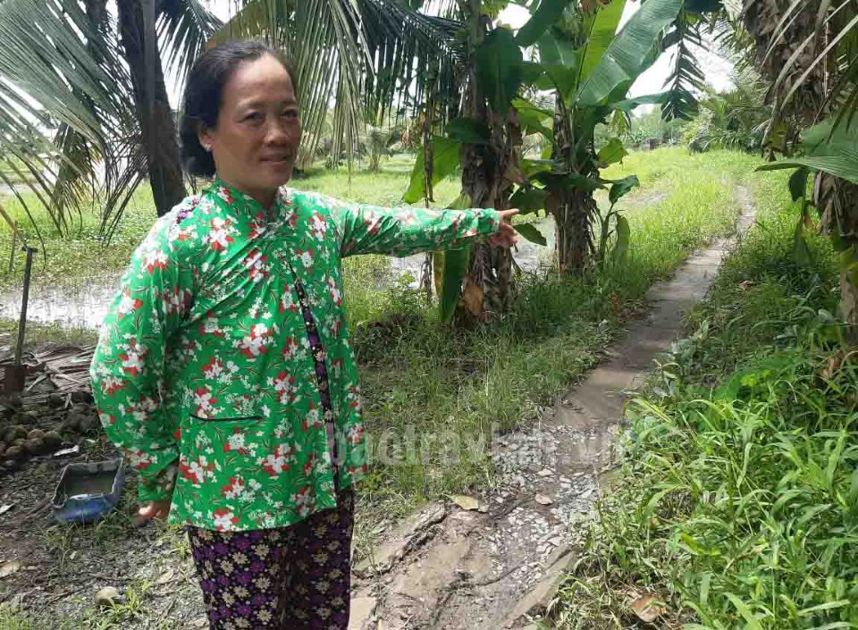 Bà Hồng Thị Dình, ấp Lưu Cừ 1, xã Lưu Nghiệp Anh, huyện Trà Cú cho biết: gia đình có 01ha đất, trong đó có 0,5ha trồng mía và dừa, diện tích còn lại nuôi cá. Do phần đất nằm tiếp giám với rạch Tà Nếp nên thường bị ngập úng do triều cường, nhất là vào mùa mưa. Năm 2019, tuyến đê bao cặp kênh Tà Nếp được nâng cấp, gia đình cũng tham gia tu sửa lại bờ bao, từ năm 2020 - 2021 không còn bị ngập úng. Khu vực này nếu sạt lở bờ bao, ảnh hưởng đến sản xuất rất lớn, gây thiệt hại cho các hộ nuôi cá và trồng mía.