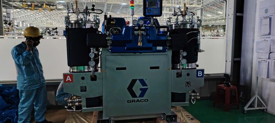 Lắp đặt bàn giao vận hành hệ thống trộn bơm phun Foam định mức tự động Graco HFR cho nhà máy sản xuất ô tô lớn tại Miền Trung Việt Nam